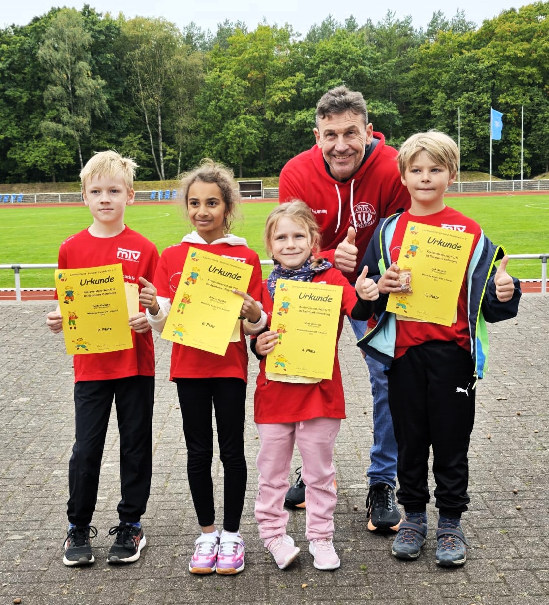 Zum Abschluss der Saison durften die jüngsten Leichtathleten des MTV Schwarmstedt bei den Kreismeisterschaften im Mehrkampf in Munster ihr Können unter Beweis stellen. Alle teilnhmenden Kinder konnten im Dreikampf am Ende mit guten Leistungen stolz ihre Urkunden mit nach Hause nehmen. Hier die Platzierungen:Bode Gartzke 2.PlatzErik Schulz 3. PlatzAlma Semrau 4. PlatzAmelia Ngoko 6. Platz